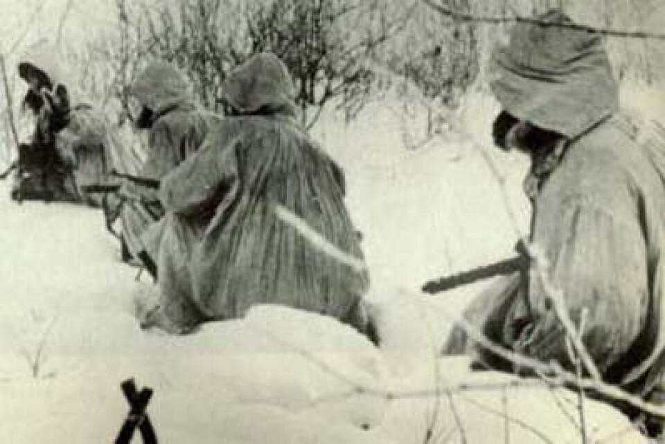Norske frontkjempere ved Leningrad-fronten. (Foto: Fra Kjell Fjørtofts bok «Veien til Østfronten»)