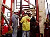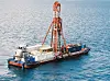 En av metodene forskerne har brukt er å bore ned i grunnen under innsjøen og hente ut en lang kjerne med materiale de kan analysere. Her fra boringen i 2005. (Foto: Anders Noren)