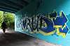 betongtrappen spilles reggae-musikk ut av en annen høyttaler.