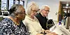 Ved langbordet sitter seniorgruppa med
