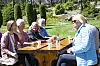 – Kan du sende makrellen? Er det mer kaffe? Hvor er syltetøyet vi sylta i høst? – Dette er rene hotellfrokosten, utbryter Steinar Karlsen som har benyttet seg av tilbudet i fem år. (Foto: Tove Rømo Grande / NMBU)
