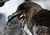 Sørjo finn óg vegen til fjella ved Tor-stasjonen. Dei jagar egg og ungar til petrellane og er eit rovdyr som petrellane prøver å halde unna ved å spytte ein gulaktig, oljehaldig væske som forsvarsmekanisme. Dette er mageolje. Denne olja luktar sterkt og kan gjere fjøra til rovdyr våt og øydeleggje isolasjonsevna deira, noko som gjer det vanskeleg å fly eller halde varmen.(Foto: Sébastien Descamps / Norsk Polarinstitutt)