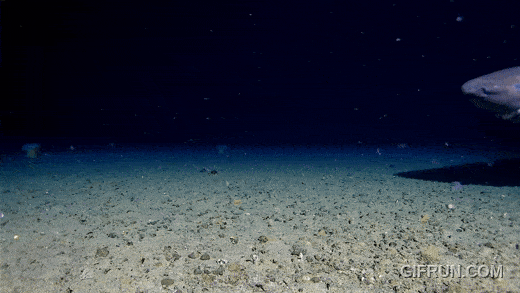 Forskere har gjort sjeldent filmopptak av hai i Antarktis.(Video: Minderoo-UWA Deep-Sea Research Centre, Inkfish, Kelpie Geoscience. GIF laget av Elise Kjørstad/forskning.no)