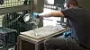 En trener latet som hun tok druer ut av en beholder og la dem i to krukker. Så tømte hun den ene krukken over i beholderen. Kanzi holdt styr på hvor det fortsatt befant seg en liksom-drue.
