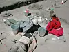 To studenter ved en grav ved Jiskairumoko i Peru. De får hjelp fra lokalbefolkningen. (Foto: Mark Aldenderfer)