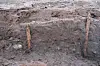 På Torgård på Tiller viser arkeolog Raymond Sauvage fram en rad smale staurer. De er i ferd med å komme fram fra undergrunnen.