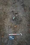 – Foreløpig har vi funnet knappen til en såkalt ryggknappspenne. Dette tyder på at gravhaugen kan ha rommet en rikt utstyrt kvinnegrav fra merovingertid, sier Sauvage.