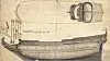 Øverst David Balfours tegning av Hummeren, som han bygde for Christian IV i 1624. I alt ni skip ble bygget med skipet som modell. Nedenfor en foreløpig plan over vraket av To løver og det noe mindre fartøyet Neptunus. Forstavnen på To løver har forskjøvet seg noe. A: hoveddekkets bjelker. B: øvre dekksbjelker, C: lensepumper, D: forsterkninger som ble lagt til skipet under forberedelsene til senkningen.(øverste illustrasjon: Rigsarkivet, tegningene under: Niklas Eriksson)
