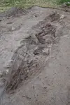 Treverket lå akkurat der georadaren hadde gitt utslag.(Foto: Håvard Hegdal, NIKU)