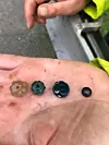 Skjellene lå med den buede siden ut og rettkanten opp. De dekket delvis munnen.(Foto: Raymond Sauvage, NTNU Vitenskapsmuseet)