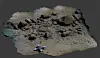 Steinmuren skulle gjøre det lettere å presse jaktbyttet til riktig sted.(Foto: P. Hoy, Universitetet i Rostock, modell laget med Agisoft Metashape av J. Auer, LAKD M-V)