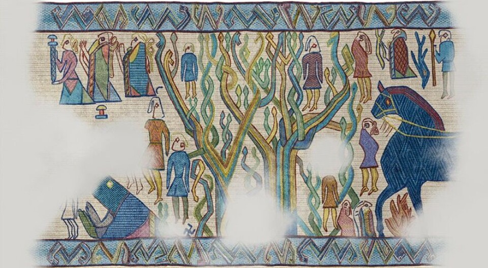 Yggdrasil er verdenstreet i norrøn mytologi - og Vedeler viser til kjente fortellinger om Odin som skal ha ofret seg selv ved nettopp å henge seg i Yggdrasil. Og at det kan ha blitt utført menneskeofringer når Odin er blitt tilbedt.