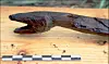 For rundt 4000 år siden havnet denne utskårne slangen i en myr i Sør-Finland. Den er svært godt bevart. Noen har formet et presist slangehode som løfter på halsen.