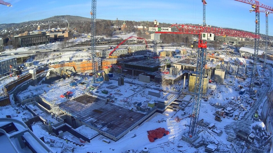 Livsvitenskapsbygget i Oslo skal stå klart i 2026.(Foto: Stillbilde fra webkamera desember 2022, hent.no / UiO)