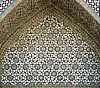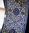 "Portal fra begravelsesstedet Darb-i Imam i Iran, bygget i 1453. To girih-mønstre overlapper hverandre. Bilde: K. Dudley og M. Elliff."