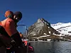 Forsker Sebastién Descamps og studenter på vei til fuglefjellet Alkhornet på Svalbard for å telle krykkjer. (Foto: Ann Kristin Balto/Norsk Polarinstitutt) Ann Kristin Balto