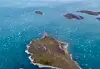 Kongsfjorden består av flere holmer og skjær, fuglefjell og mektige isbreer som munner ut i fjorden. Forskningsstasjonen Ny-Ålesund i forgrunnen.(Foto: Geir Gotaas / Norsk Polarinstitutt)