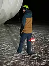Forsker Tim Carlsen ved UiO, her ved siden av måleballongen som ble brukt til å samle inn data om skylaget over Ny-Ålesund.(Foto: Julie Pasquier)