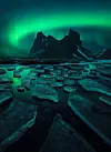 Fra den islandske halvøya Hvalnes har fotografen klart å fange nordlyset, aura borealis, i en flyktig dans over den smeltende isen. I motsetning til de fleste fotografier av nordlys, som tas om vinteren, ble dette bildet nemlig tatt om våren. Mellom den frosne innsjøen og himmelen ser vi fjellet Eystrahorn. Polarlys forekommer når partikler med elektrisk ladninger fra solen, som blir båret gjennom verdensrommet på solvinder, støter inn i jordens magnetfelt og skaper det spektakulære lysshowet.(Foto: Filip Hrebenda / APY2022)
