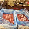 Kjøtt fra svin og storfe er vanligst. Pølsene lages med kjøtt som fortsatt er litt frossent.