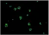 Celler av Methylocapsa gorgona som vokser på luft, liggende på et filter. Bildet er tatt 26 dager etter at enkeltceller ble lagt på filteret. I løpet av denne tiden er de blitt til 10 - 15 nye celler som danner små kolonier, mens noen ikke har delt seg i det hele tatt. (Foto: Kenneth Bowitz Larsen)