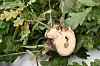 Deler av greiprøven som Juliana Perminow tok med seg tilbake til Planteklinikken i NIBIO for bakterieanalyser. Slike prøver blir tatt ut av vev som er skadet, men ikke dødt.(Foto: Erling Fløistad)