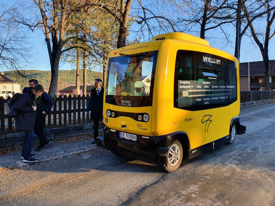 På Kongsberg der de selvkjørende bussene blant annet er gitt prioritet i lyskryss, er de nå en del av det ordinære kollektivtilbudet.