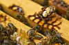 Flere varroamidd på en bikube. Midden er så stor i forhold til bien at den tilsvarer en middagstallerken på et menneske.(Foto: Julio Cortez / AP Photo)