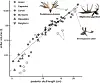 To trekk kan utvikle seg i lik takt, utdyper han. Hvis kroppsstørrelsen dobles, dobles også størrelsen på geviret, for eksempel. Eller trekkene kan utvikle seg i ulik takt slik at geviret vokser mer enn kroppsstørrelsen, over tid.