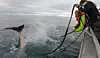 Men den vanskeligste delen av jobben gjenstod. For hvordan får man en uvillig hai på over 100 kilo til å være i ro lenge nok til at merket kan festes i ryggfinnen?