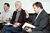 "– Lokalavisene har på ingen måte lykkes med sin satsing, sier stipendiat Arne H. Krumsvik (til høyre). Professor Rune Ottosen i midten, Espen Egil Hansen, redaktør i VG.no til venstre."