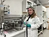 Senioringeniør Ingeborg Lysberg med en støvprøve i laboratorie hos NILU.