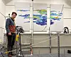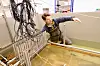 Forsker Kasper Hunnestad har ansvaret for laboratoriet. Han har brukt utallige timer på å rigge tanken med den tunge plastmodellen.