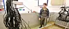 I hver ende av tanken står bevegelige stativer med rekker av aluminiumrør, omtrent på tykkelse med en hageslange, toppet med svarte ledninger.