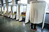 En mann stemmer i et avlukke i valglokalet i Oslo rådhus i forbindelse med kommunestyre- og fylkestingsvalget 2015. (Foto: Vegard Wivestad Grøtt, NTB scanpix)