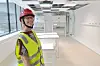 Hanne C. Winther-Larsen på befaring i infeksjonslaben i det nye Livsvitskapsbygget. Sebrafiskinfeksjonslaben var utilgjengeleg då biletet vart teke.(Foto: Torstein Helleve / UiO)