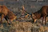 Slåsskamp og store våpen krever mye energi, og er dessuten risikabelt. Hos mange dyr gjør det at hannene lever kortere. For eksempel gjelder det hjorten.(Foto: Alastair Grant, NTB)