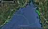Her ser du rute «Freya» symde tilbake.(Kart: HI)