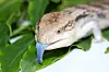 En blåtungeskink reker tunge.(Foto: Michael Utin / Flickr lisens CC BY 2.0)