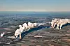 Maurik vannkraftverk i Nederland. Det ble bygget i 1988 ved demningen i Amerongen på Nedre Rhinen, i den sørøstlige delen av landet. Kraftverket ligger i stor grad under bakken.(Foto: Make more Aerials / Shutterstock / NTB)