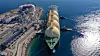 Dronefoto fra luften av et LNG-tankskip (flytende naturgass) som ligger for anker ved Salamina i Hellas. Naturgass er bedre enn kull og brunkull når det gjelder luftforurensning som svoveldioksid, nitrogenoksider og svært fine partikler kalt PM2,5.(Foto: Aerial-motion / Shutterstock / NTB)