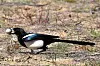Ei skjære betrakter det som må være et lite festmåltid for en sulten kråkefugl.