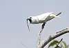 Pendelklokkefuglhannen (Procnias albus) har nemlig en svært iøynefallende, hvitflekket pyntetråd dinglende fra nebbet.