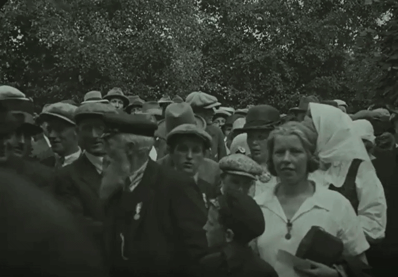 Levende bilder var nytt, og folk var slett ikke vant til å se kameraer eller bli filmet. Noen synes det er stas, mens andre smiler sjenert til kameraet.