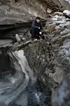 Her gjør James Welburn opptak under en bru i Longyearbyen, der han fanger lyden av den støyende veien og den sildrende bekken under isen.(Foto: David Samuel Stern)