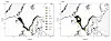 Merka som er spora her, er dei åtte som hang på laksane i meir enn 30 dagar. Dei andre løyste seg ut for tidleg til å gi tilstrekkeleg med data.(Ill: John Strøm / UiT)