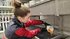 Forskar Lene Kleppe legg inn nye egg i klekkeriet. Desse skal bli surrogatar i eit nyt forsøk.(Foto: Diego Crespro / Havforskingsinstituttet)