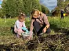 Eva Linn G. Skjæret plukker poteter sammen med sin guddatter.