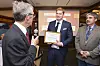 Prigogine-prisen deles ut av European Centre for Advanced Studies in Thermodynamics. Her er Daniel Tondeur, Øivind Wilhelmsen og Karl Heinz Hoffmann. (Foto: Gemini)