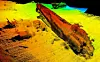 Den tyske ubåten U-864 vart senka i 1945 utanfor Fedje i Hordaland med 67 tonn kvikksølv om bord. Båten vart delt i to, og flytande metallisk kvikksølv enda på havbotnen. (Foto: Kystverket)